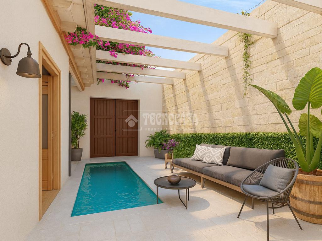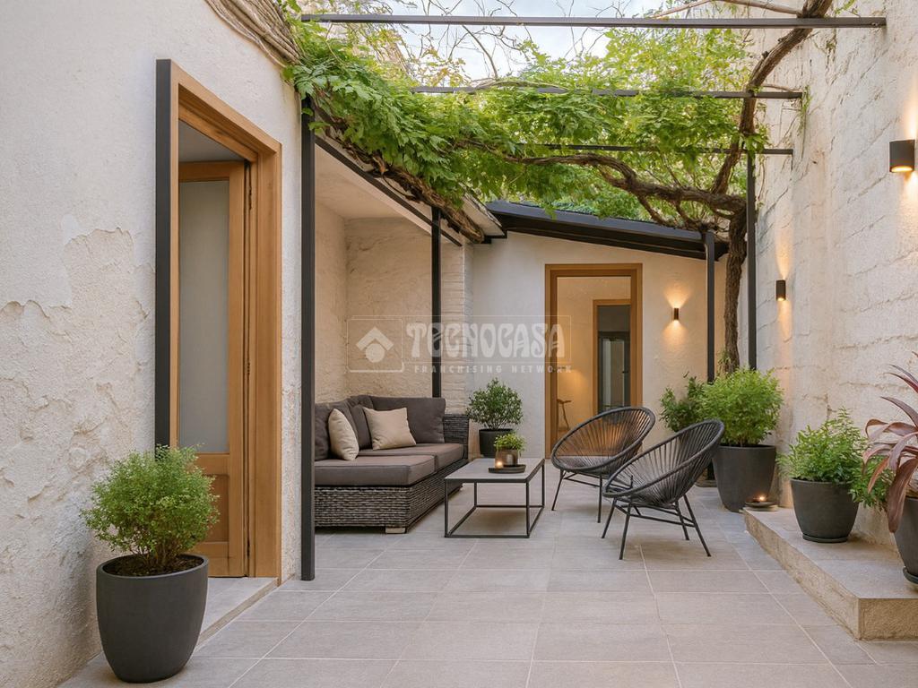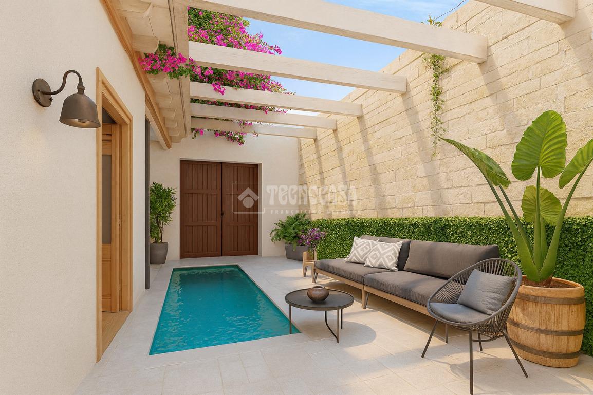 El patio, amplio y soleado, se convierte en el corazón de la vivienda: perfecto para reuniones familiares, zona chill-out, jardín o incluso piscina. Además, dispone de acceso para entrada a parking, aportando una comodidad excepcional en pleno centro.